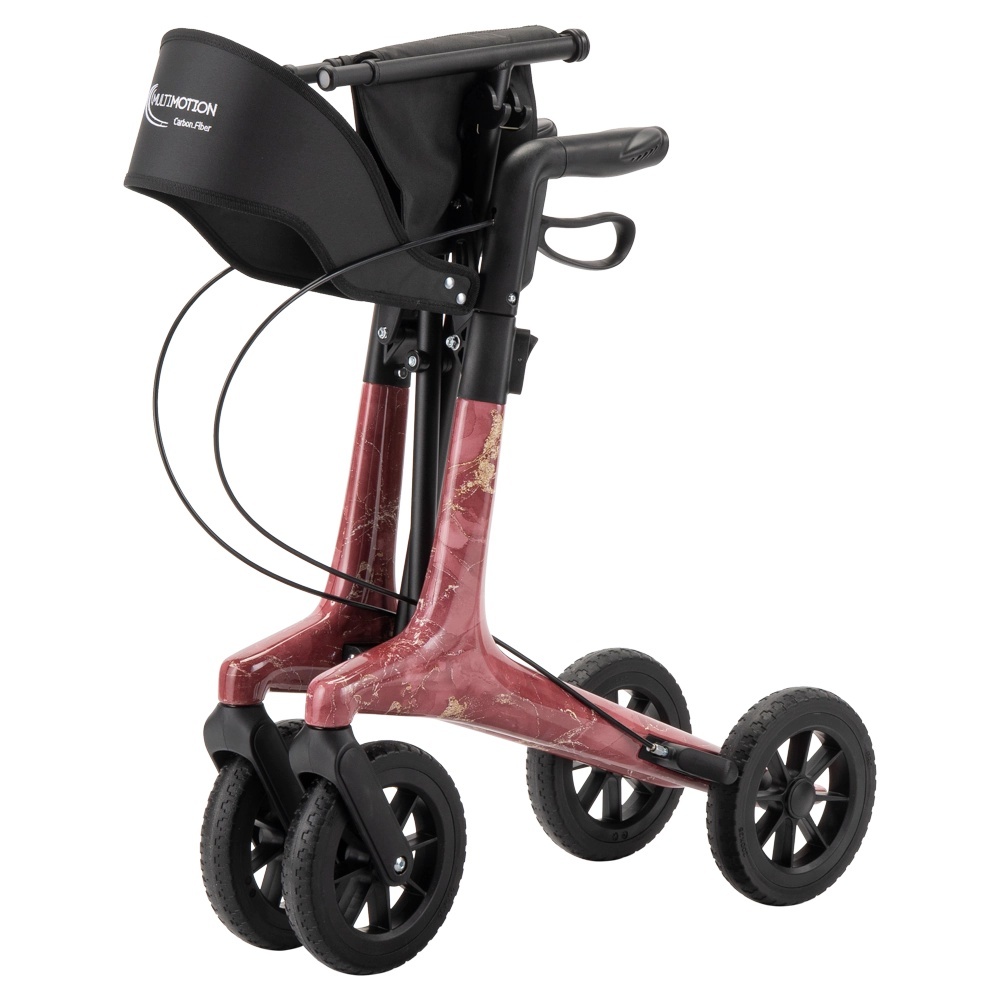 MultiMotion Carbon Rollator marmer roze (Medium/Large) – ultralichte carbon rollator met stijlvolle marmer print